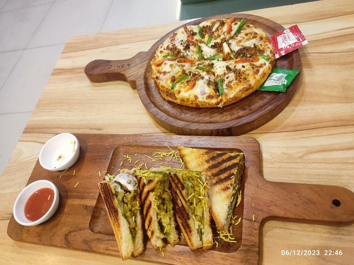 Not just limited to pizzas, the café also boasts a selection of comforting Maggi noodles. The Cheese Corn Maggi and Schezwan Maggi are popular choices that offer both nostalgia and a unique flavor punch. If you're a burger lover, don’t miss out on the Double Tikki Double Cheese Burger which is a hearty delight, perfect for satisfying those mid-day hunger pangs.